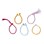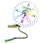 Håll i knuten underifrån, genom mittenhålet, och placera ut trådarna i skårorna som färgerna visar på hjulets ovansida. Varje färgmarkering ska ha ett par trådar.