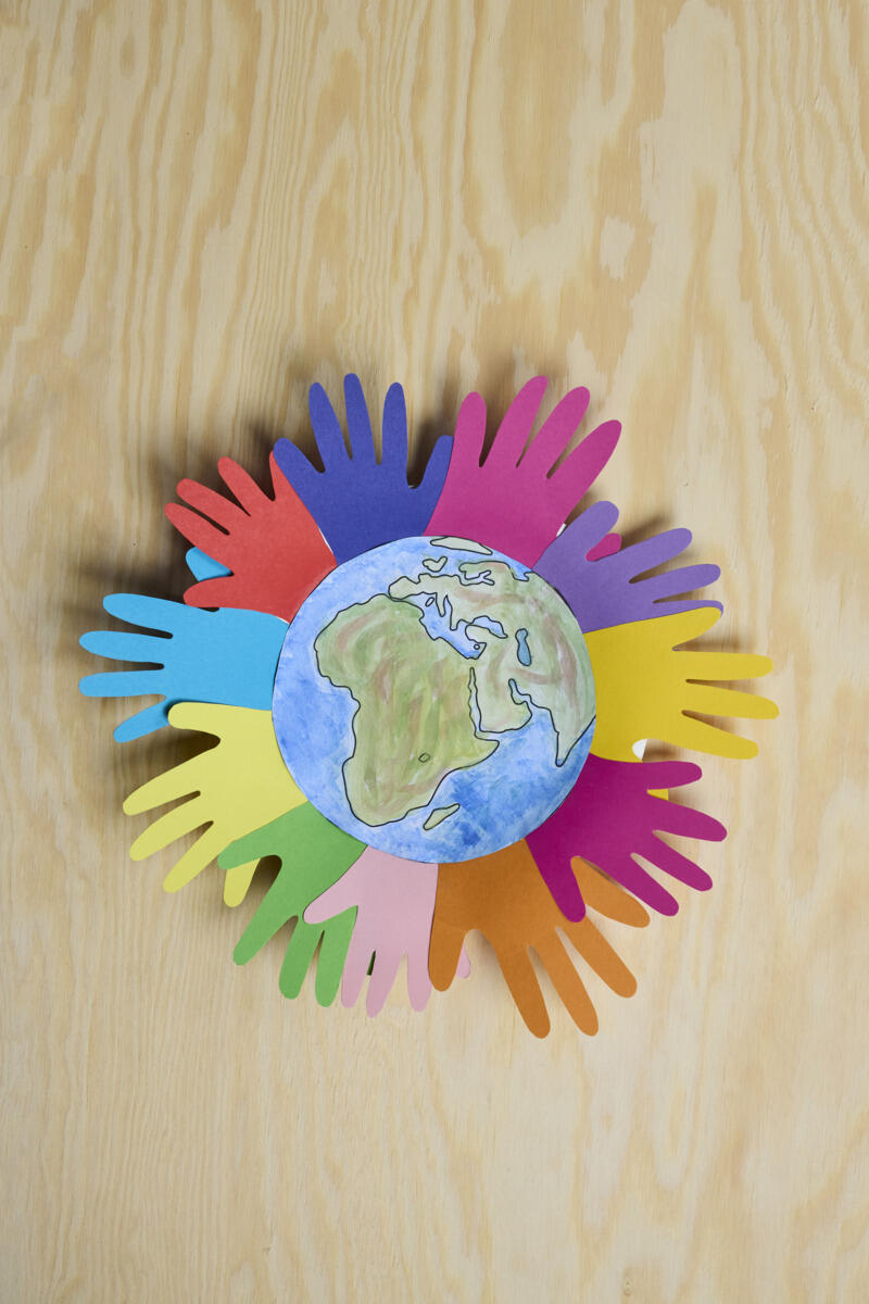- Fäst jordgloben med lim i mitten.