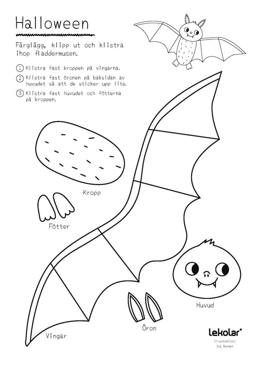 Skriv ut pdf:en. Låt barnen färglägga, klippa ut och klistra ihop fladdermusen.