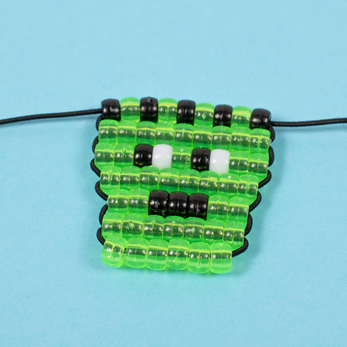 - Ta svarta pärlor för att göra en mun och fortsätt repetera steg 2 & 3 ovan.