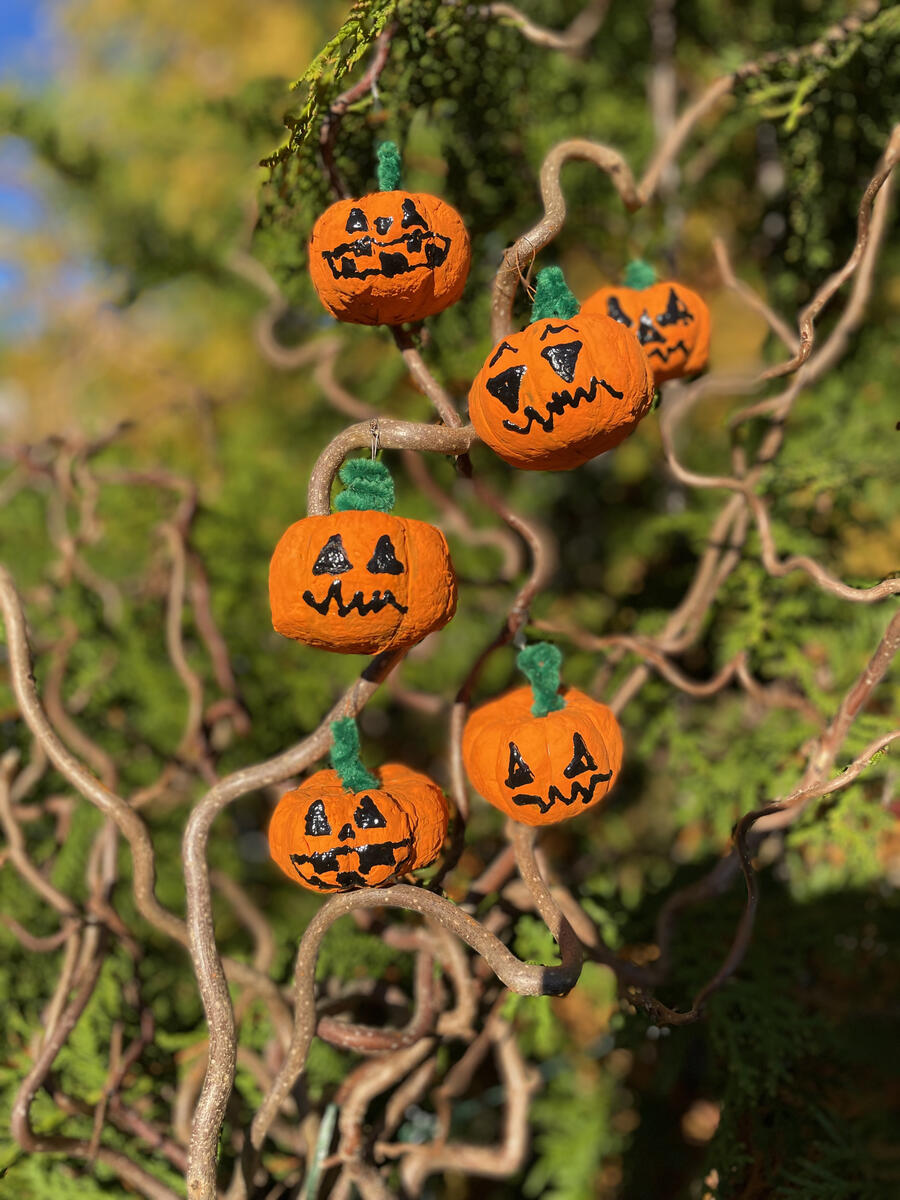- Måla pumpan orange, ta ganska så tjockt med färg för vaddkulan drar åt sig mycket färg.