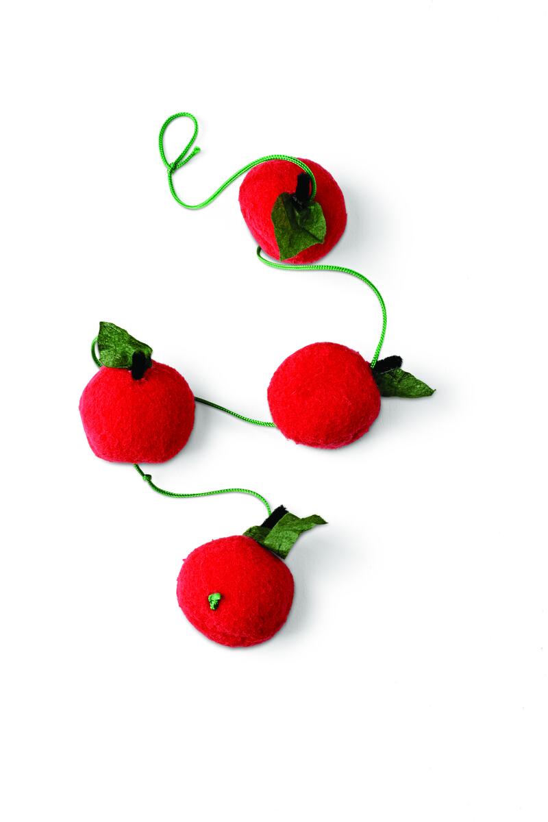- Utgå från styroporkulor som du tovar med röd filtull.