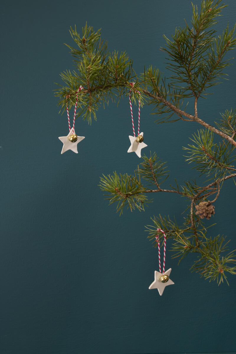 - Stansa ut en stjärna med hjälp av en form och tryck ett hål i toppen. Låt torka.