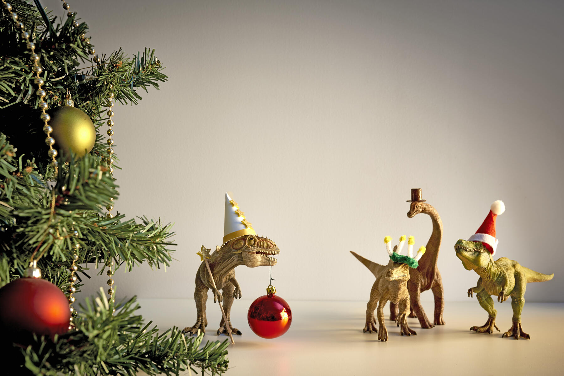 Under natten har de busiga dinosaurierna gått Lucia. De har även snott kulorna i granen.