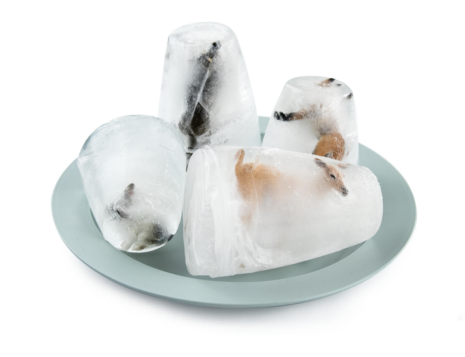 - Ta en burk eller skål och ställ ner dinosaurien i den. Håll vatten över så att det täcker dinosaurien. För klarare is, koka vattnet först. In i frysen och låt stelna helt.