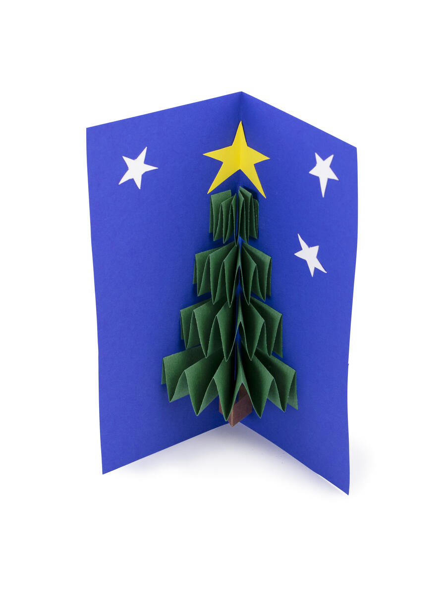 - Klipp en stjärna och en fot och limma delarna på det blå kortet.