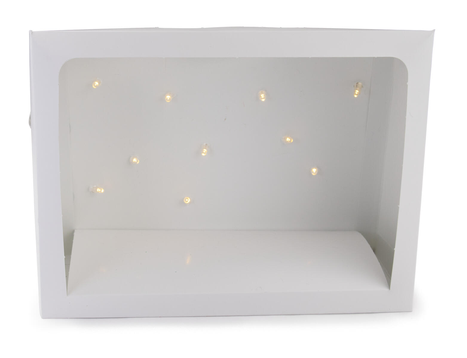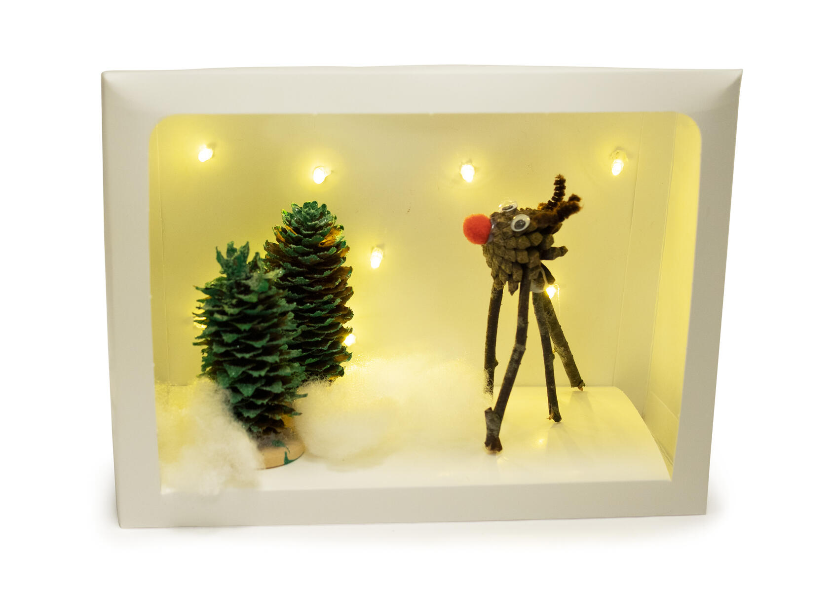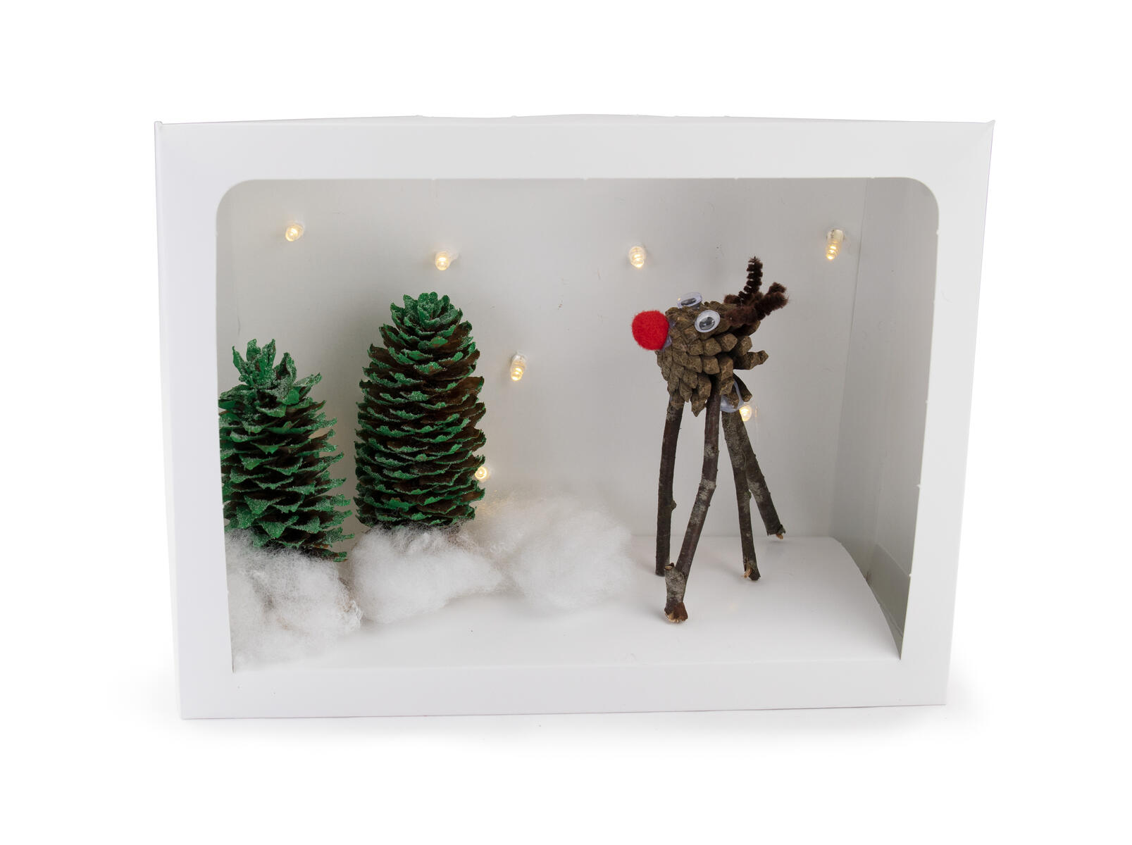 - Dekorera med snö för extra mycket vinterkänsla. Låt barnen lysa upp scenen med hjälp av ljusen.