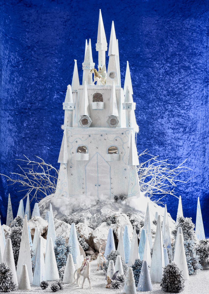 Pensla på artmedium och glittra upp hela slottet i pastellblått och olika diamantglitter.