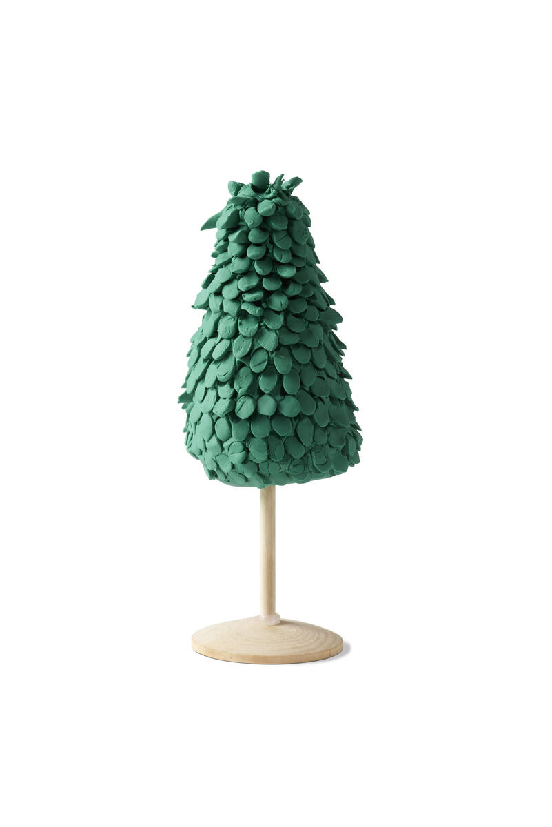 För sugrörsspetsen några millimeter in i leran. Samtidigt som du tar bort sugröret för du det något uppåt. Upprepa tills hela granen är klar.