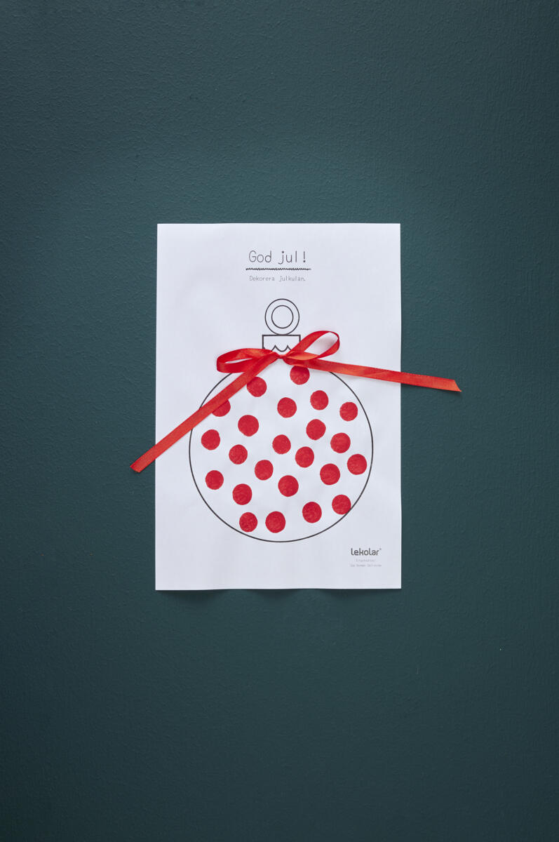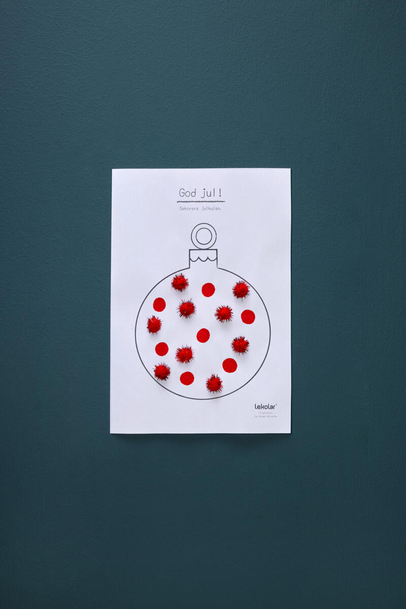 1. Skriv ut PDF:en, klipp ut julgranskulan, färglägg och dekorera på valfritt sätt! Inspiration finner ni på tips 1853.