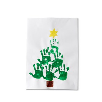 Gör handavtryck på ett papper så att det bildar en gran.