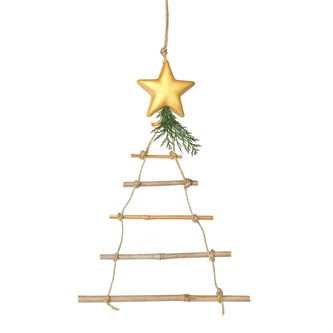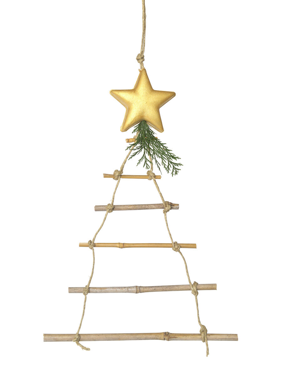 - Gör en knut med de båda snörena ovanför stjärnan så att stjärnan inte glider upp. Dekorera med grankvistar eller annat om ni vill.