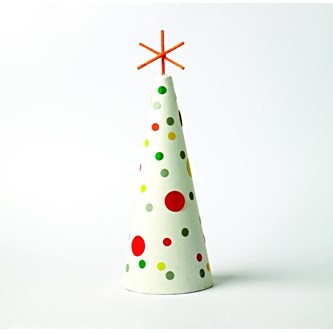 - Använd limpistol eller allroundlim för att limma fast dekorationerna på pappkonen.