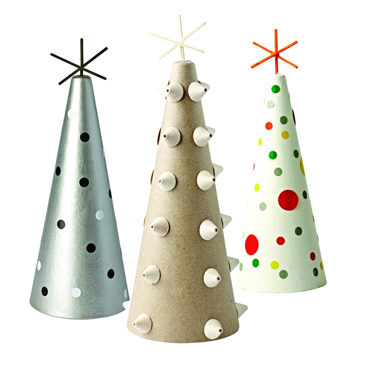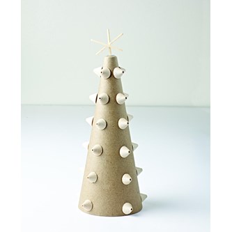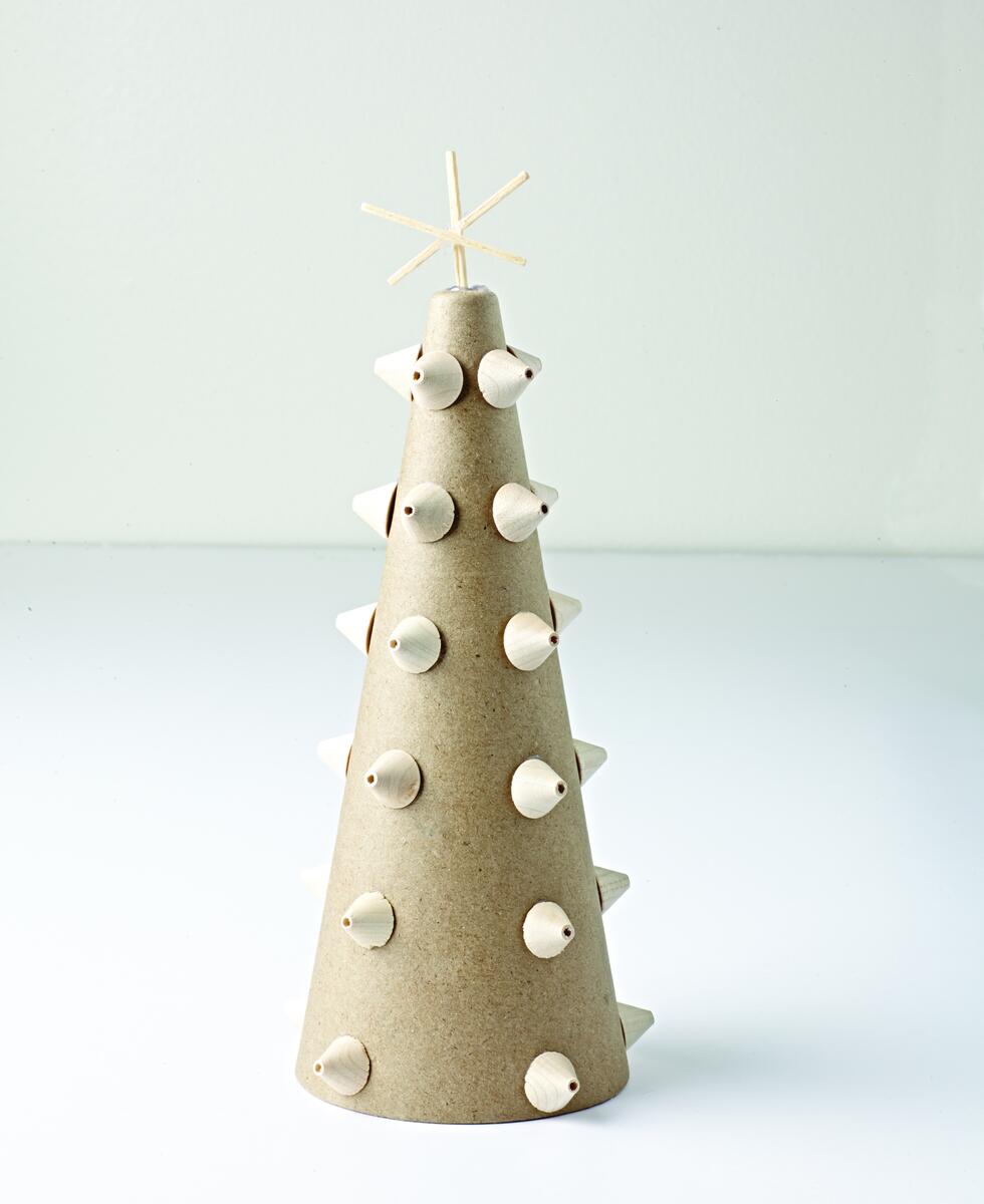 - Limma ihop tre tändstickor till en stjärna med limpistol eller allroundlim och limma sedan den i hålen på toppen av pappkonen.