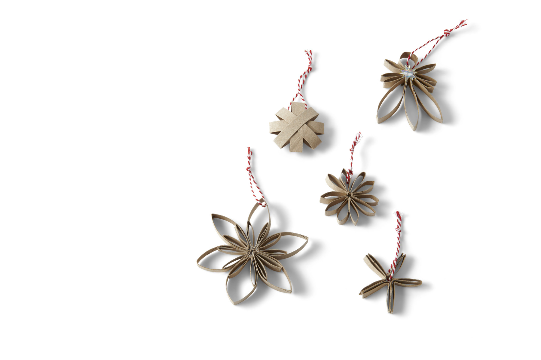 - Klipp smala remsor av toarullarna, som ni plattat till längs mitten, vik dem dubbelt eller vad som passar ert alster.