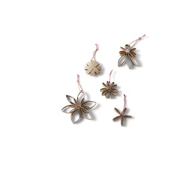 - Se bild för montering. Dessa kan sedan målas eller så doppas kanterna i lim och sedan glitter/strösocker. Knyt eller limma fast snöre för upphängning.