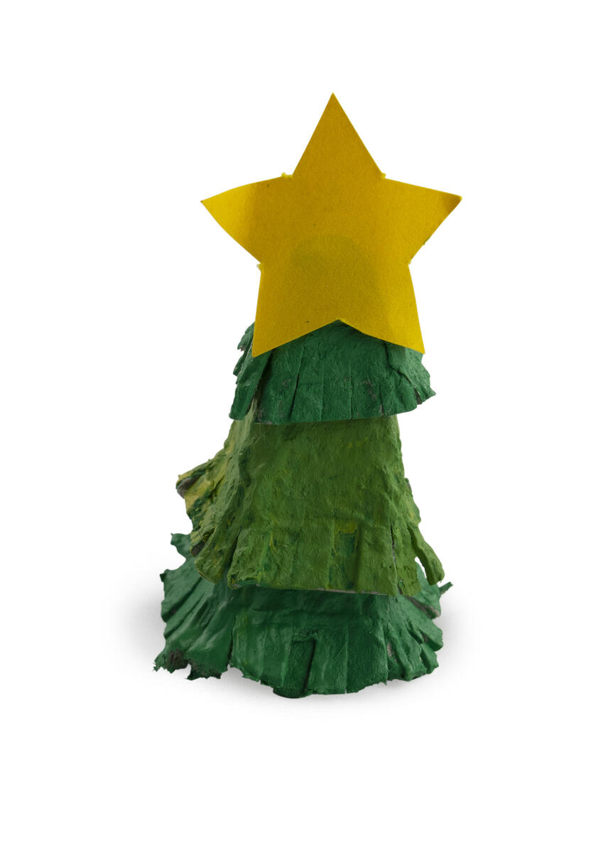 - Julgran – klipp ut form i äggkartong. Måla delarna i olika toner av grönt. Blanda färgerna för rätt nyans. Klipp fransar på delarna. Klipp ut stjärna och limma på toppen.