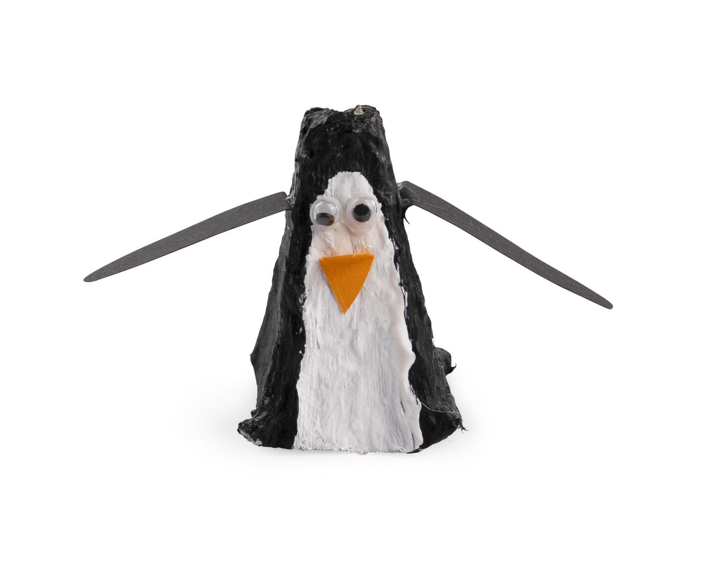 - Pingvin – klipp ut form av äggkartong. Måla svart och vit enligt bild. Klipp ut vingar och näbb i papp. Limma dit ögon, näbb och vingar.