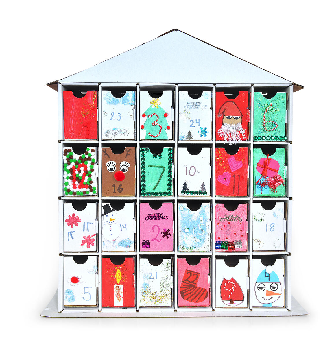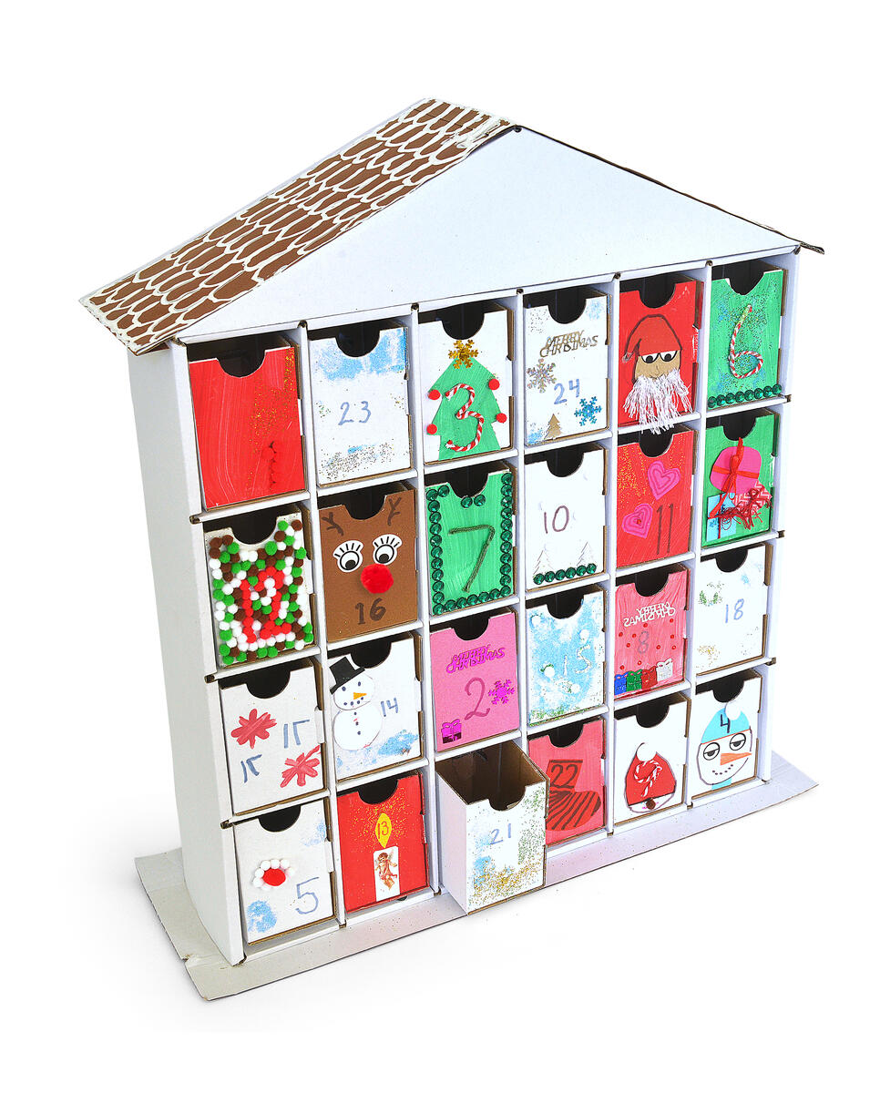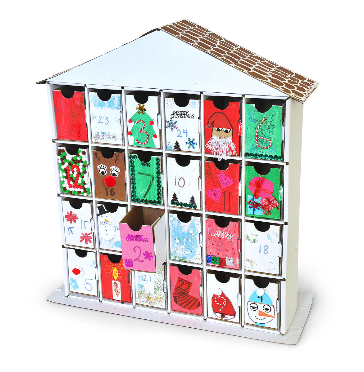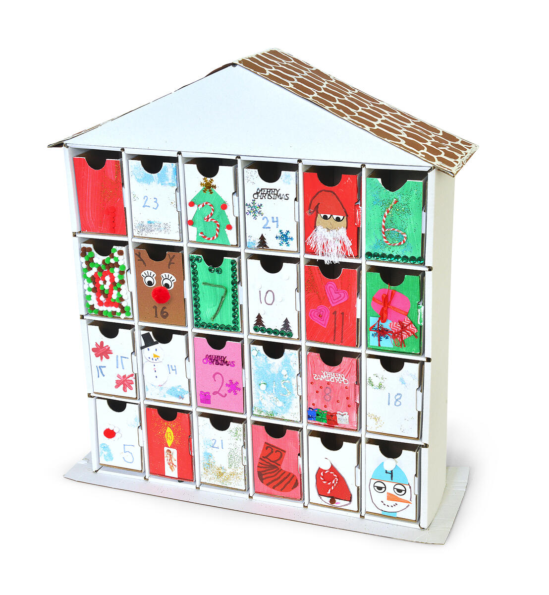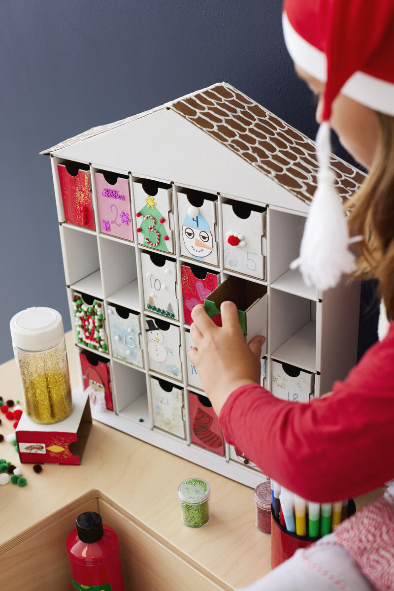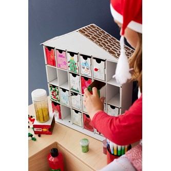 - Montera ihop huset och de 24 lådorna. Det är många delar som ska sättas ihop, så avsätt gärna tid för detta.