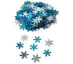 500 g/fp. Glittriga snöflingor i blått och silver....