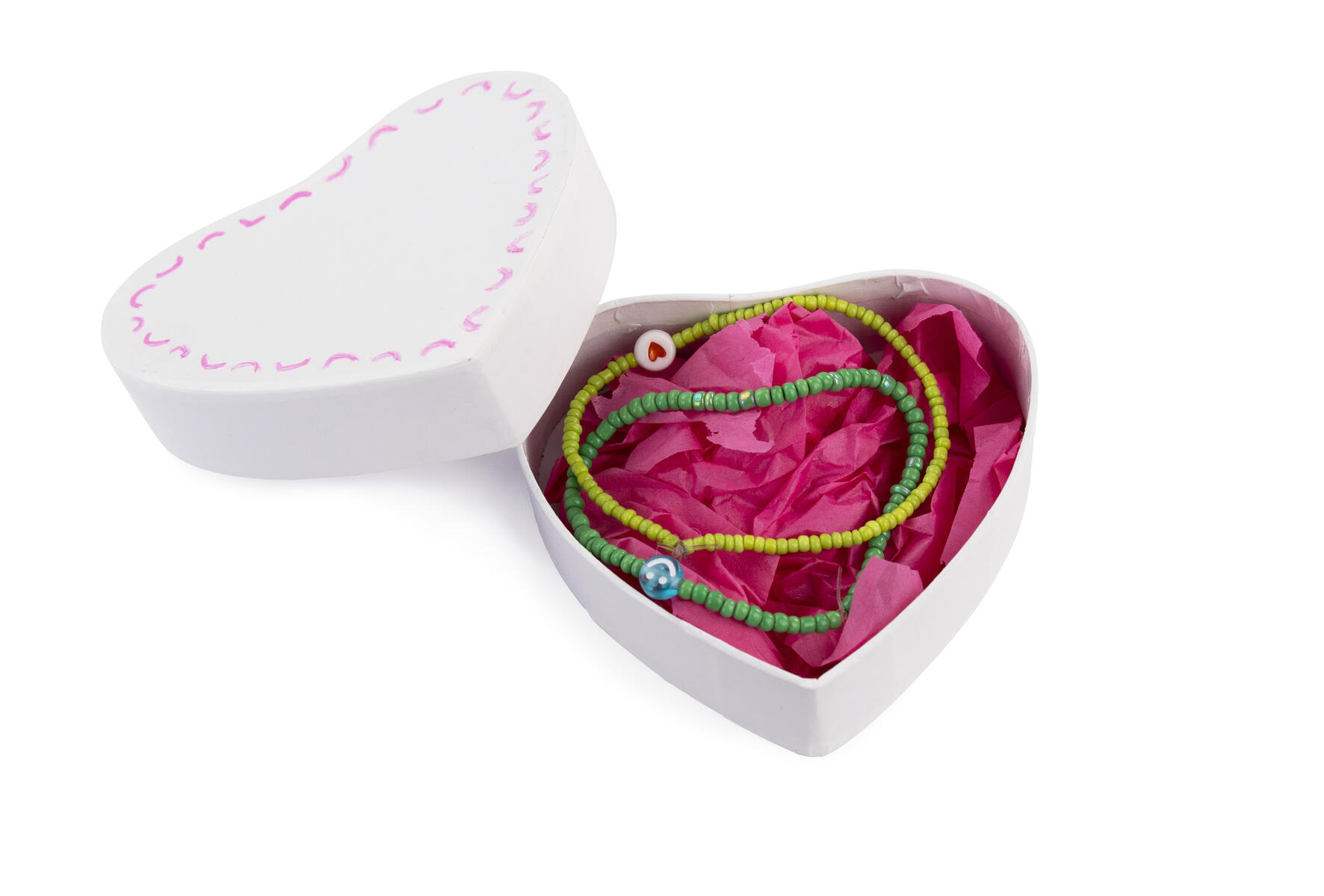 - Trä pärlorna på ett elastiskt snöre med hjälp av en pärlnål.