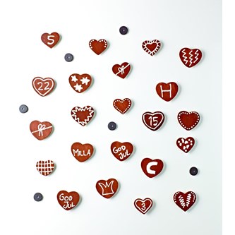- Häll i vit färg i flaskan med spetskapsyl och dekorera hjärtanen som du vill.