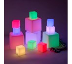 - Här har vi utgått från den pedagogiska kuben som vi först klätt med vitt tyg på insidan för att det ska bli ett mysigt sken från låtsaselden samt att det skulle kännas som att man sitter på stubbar i snö. Runt om kubens tak, på insidan, satte vid sedan en ljusslinga.