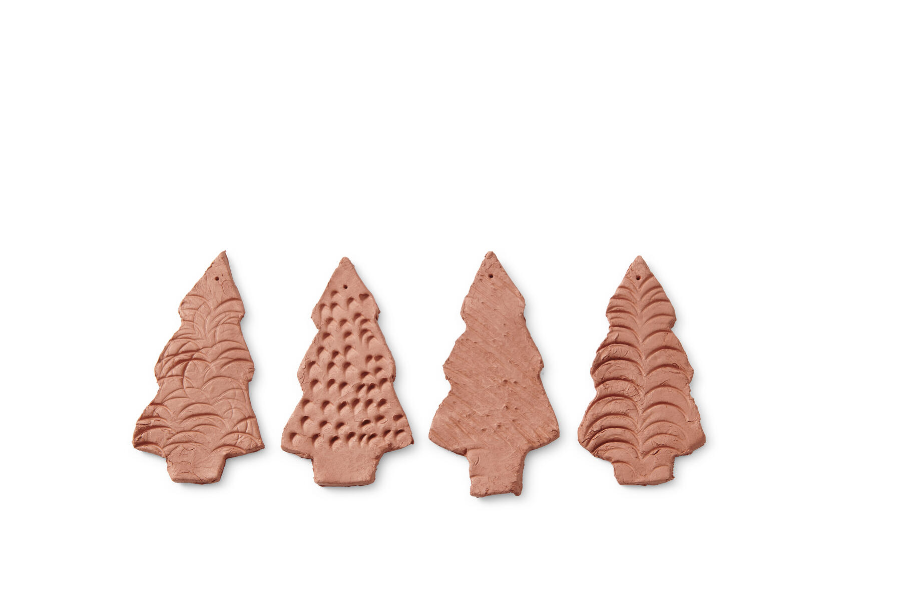 - Kavla ut leran till den tjocklek du vill ha på granarna. Tryck ut granar med formen.