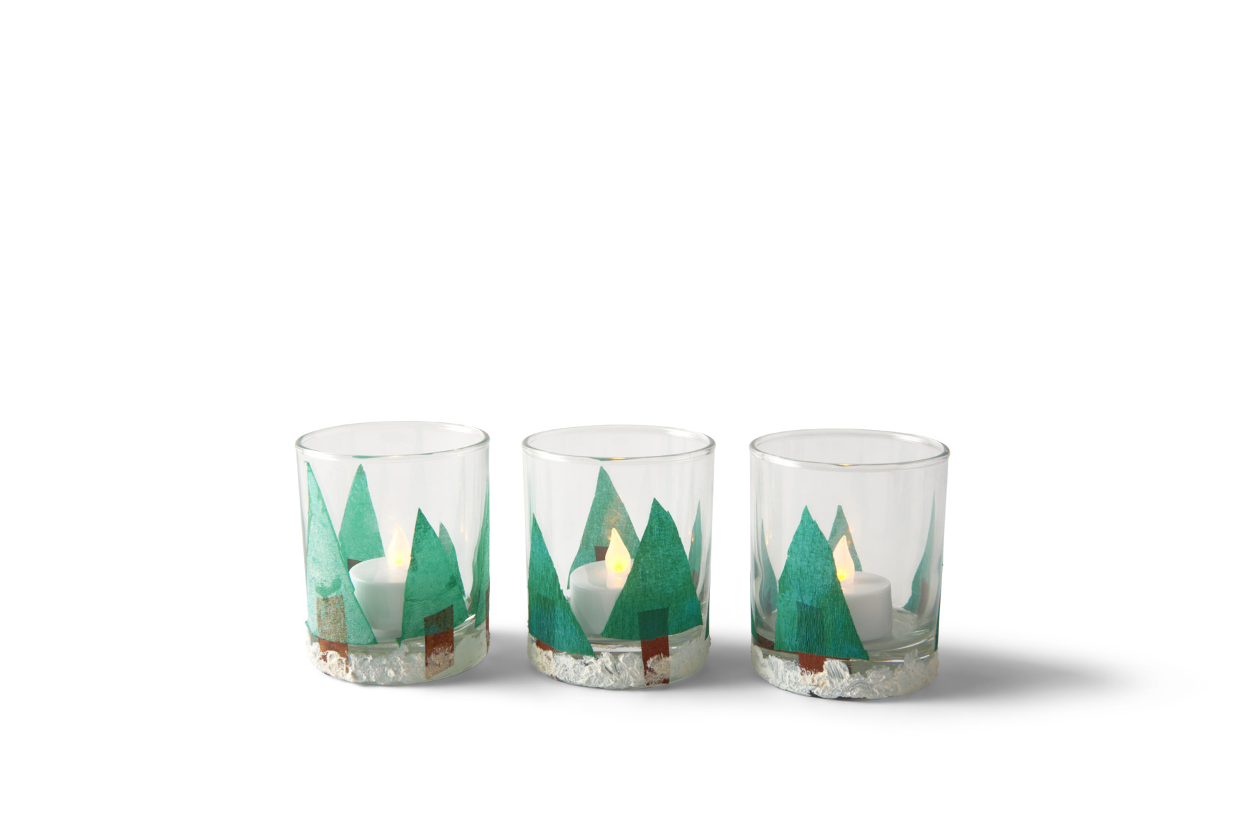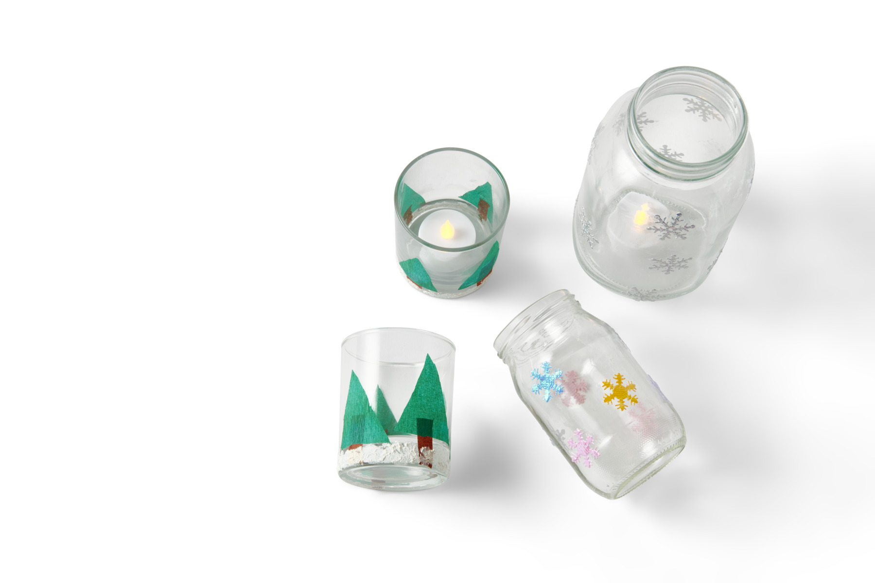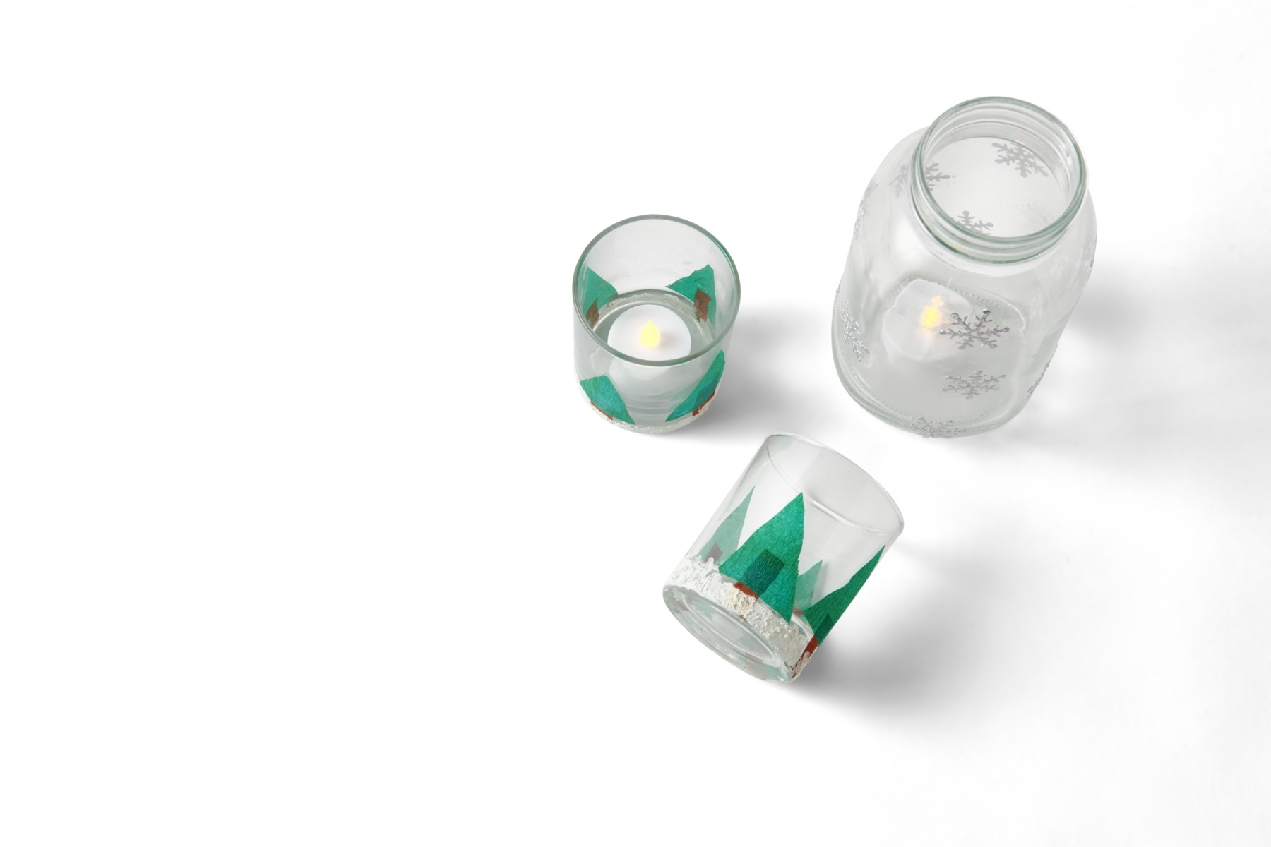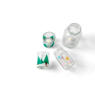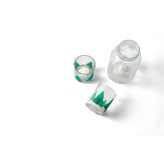 - Upprepa detta runt hela glaslyktan. Vill man ha extra effekt kan man måla på lite effektsnö i botten på burken.