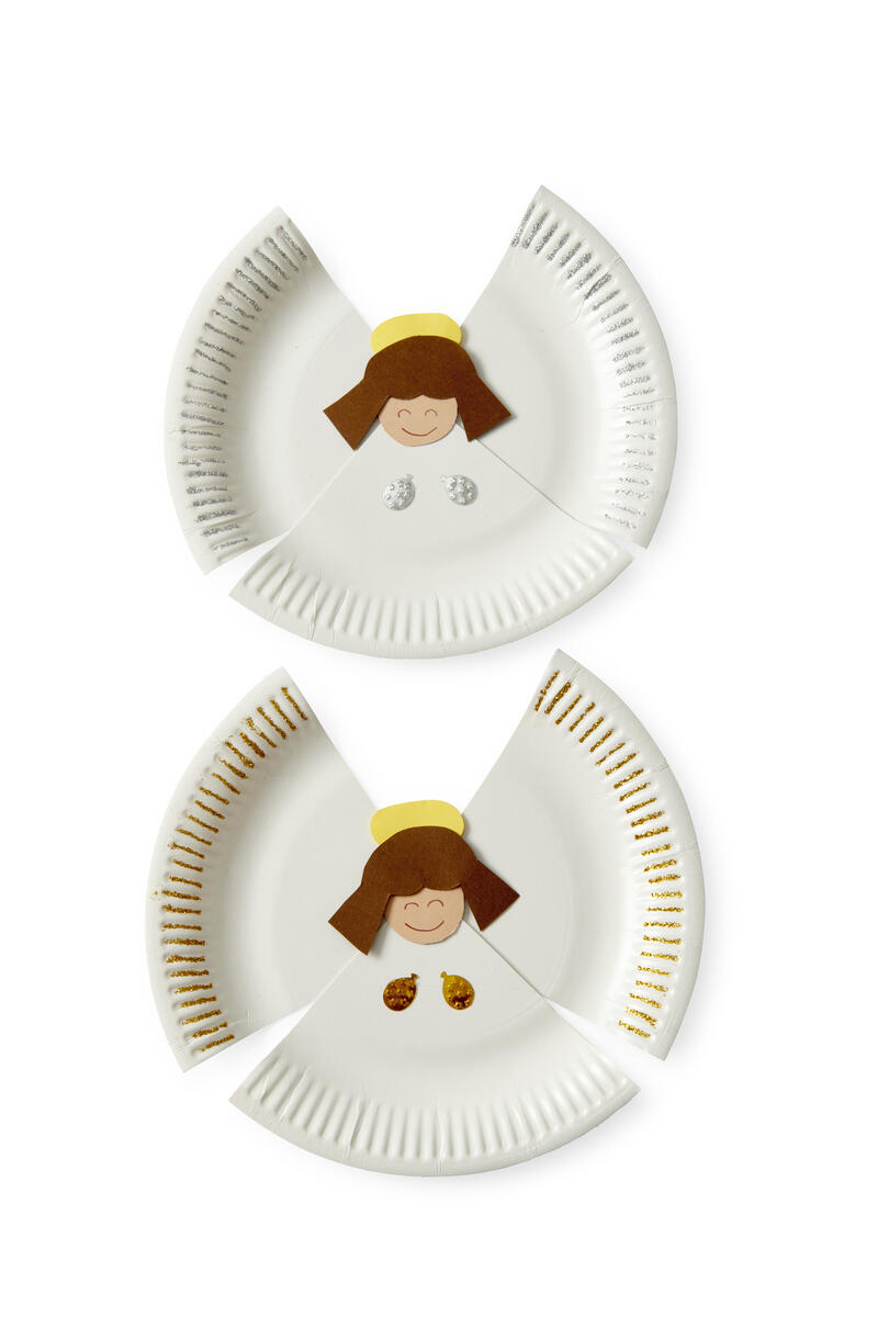 Limma hår på huvud och gloria under (se bild). Limma fast på din papptallrik