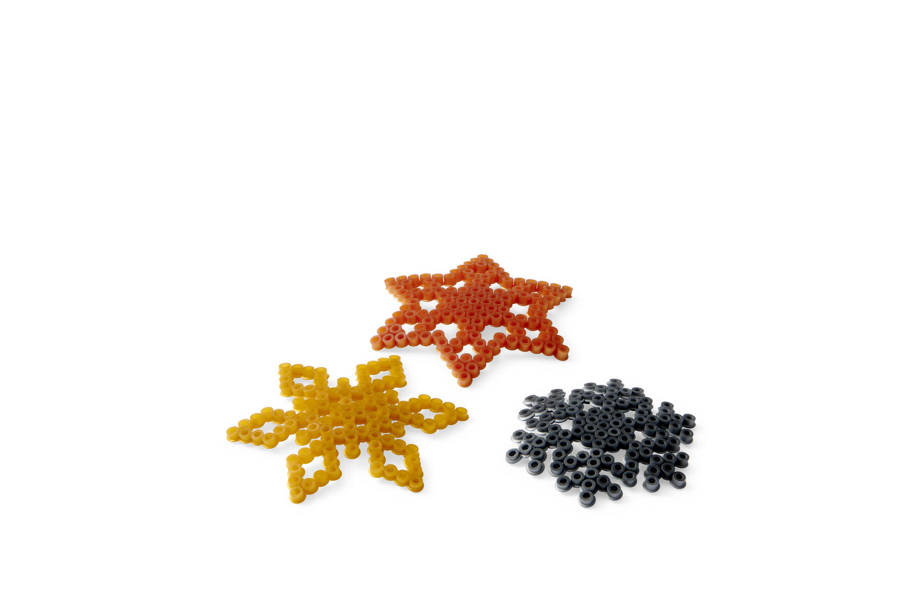 - Stryk ihop pärlorna med ett bakplåtspapper mellan motivet och strykjärnet. Tänk på att stryka motivet långsamt och ganska länge så att pärlorna smälter ihop ordentligt, men se till att pärlorna inte smälter fast i plattan. Låt motivet svalna ordentligt innan det lossas från plattan. En strumpsticka är ett bra hjälpmedel för att lossa pärlade motiv från underlaget.