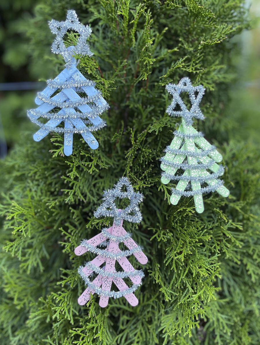 - Limma fast två piprensare som girlanger runt hela granen, gärna med limpistol så att det fäster snabbt.