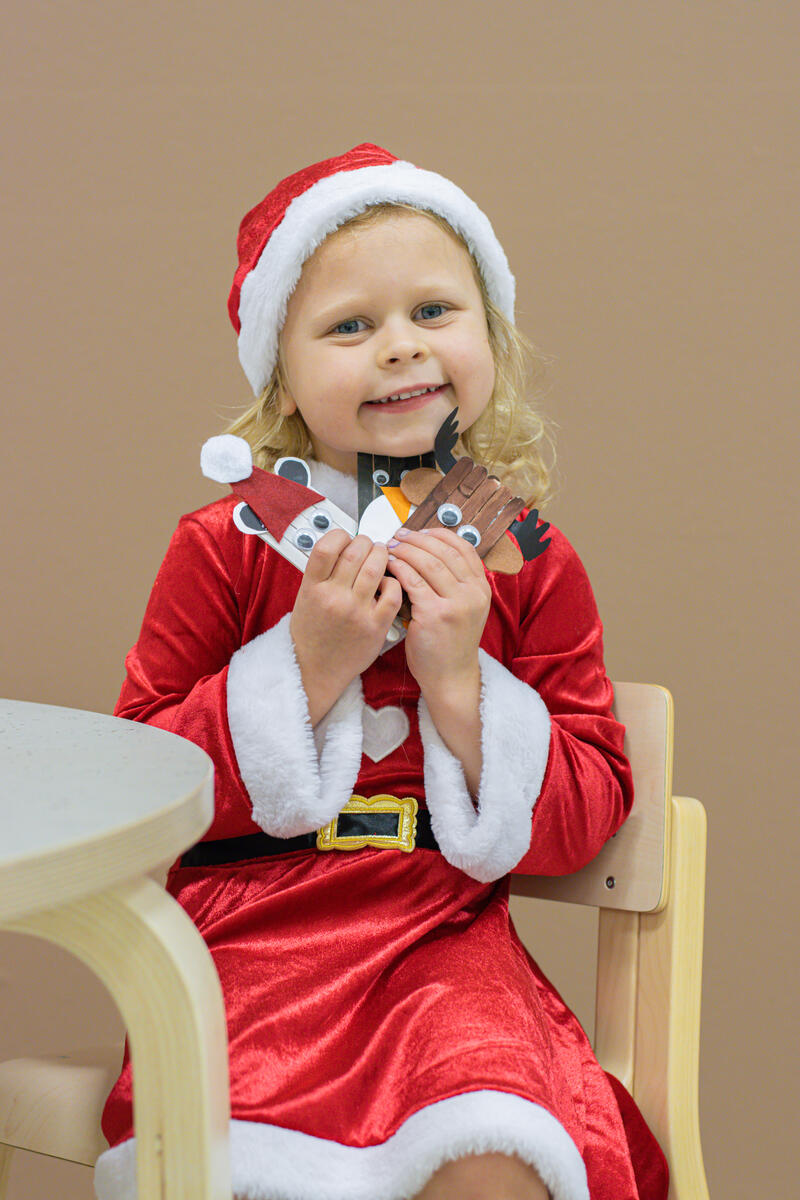- Till älgen har vi förutom papper använt oss av brun dekorationsfilt och till björnen har vi även använt röd och vit dekorationsfilt samt en pompom till nosen.