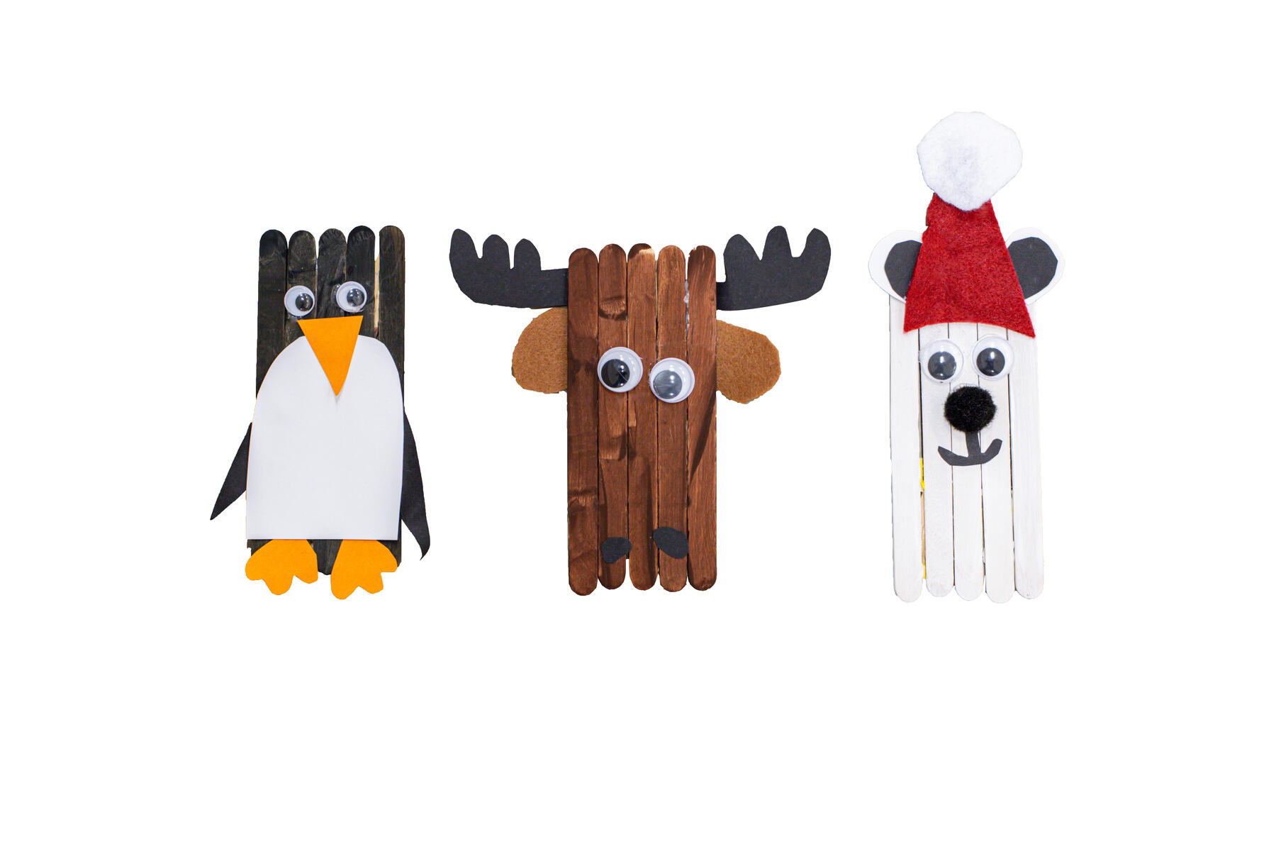 - Skapa pingvinens delar med hjälp av vitt, svart och orange papper. Gör detsamma med älgen och björnen.
