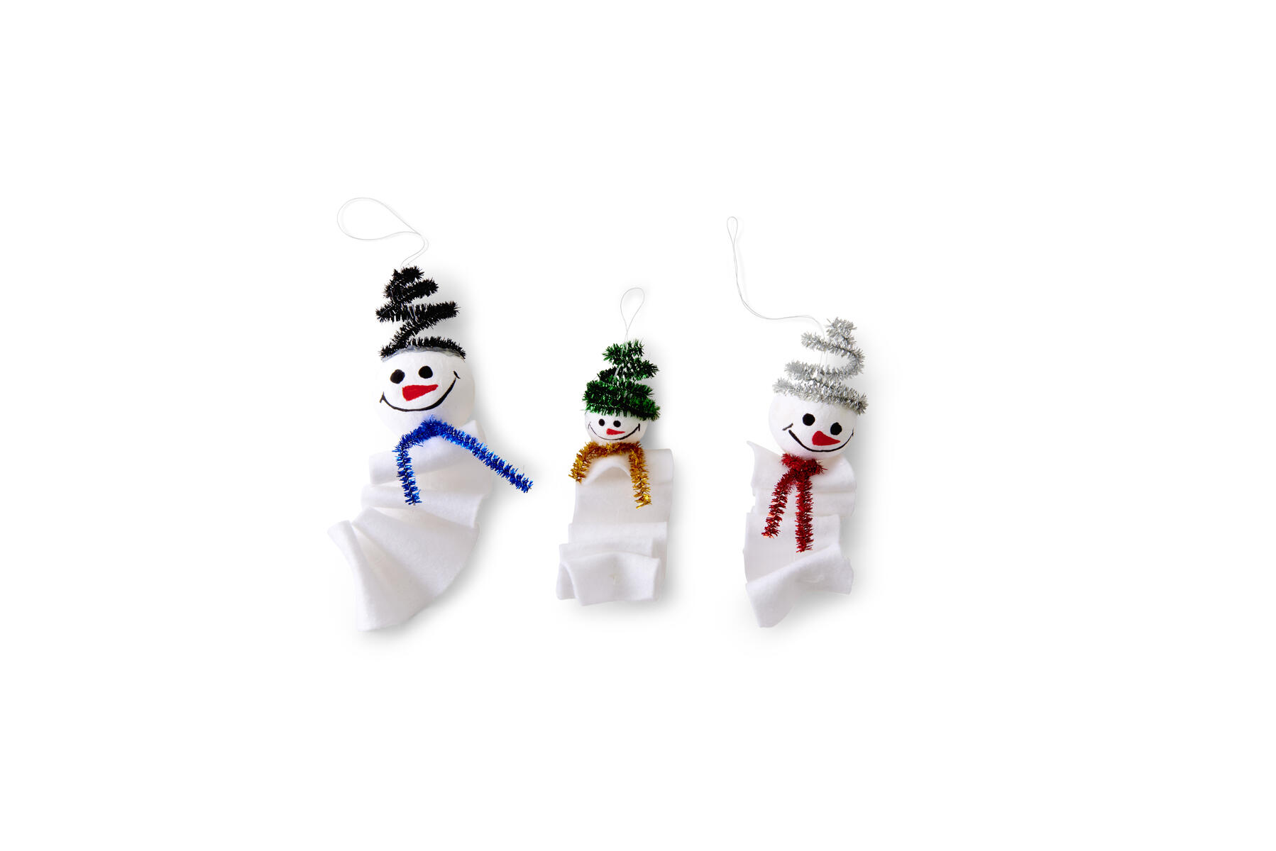 - Limma till sist fast en tråd i huvudet så snögubben går att hänga upp.