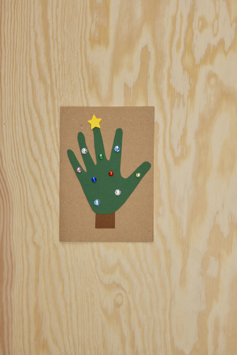 - Klipp ut en hand av dekorationskartong + stam och stjärna.