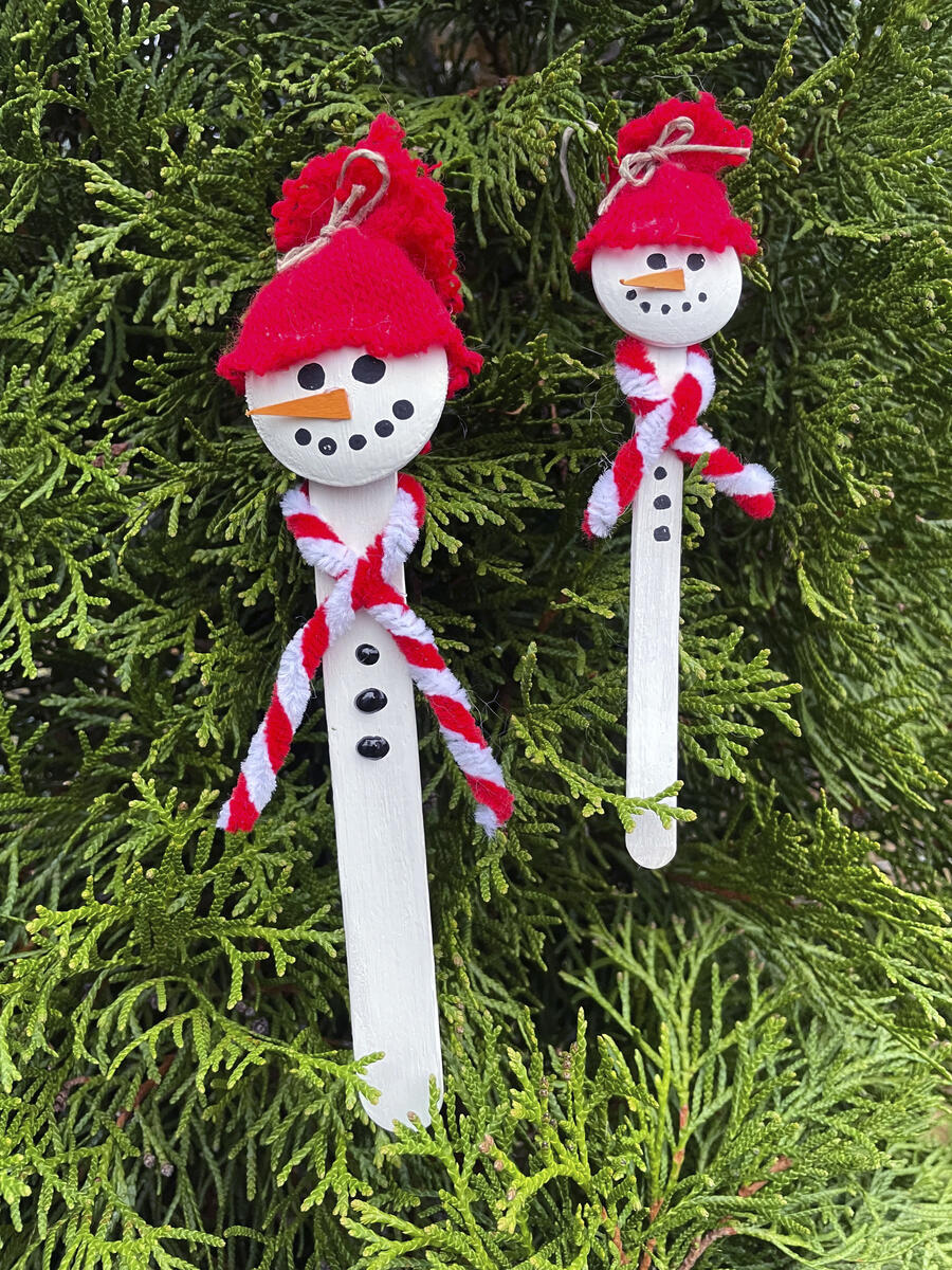 - Ta en röd och en vit piprensare och tvinna ihop så att de blir randiga, kapa av till lagom längd och limma fast till halsduk.