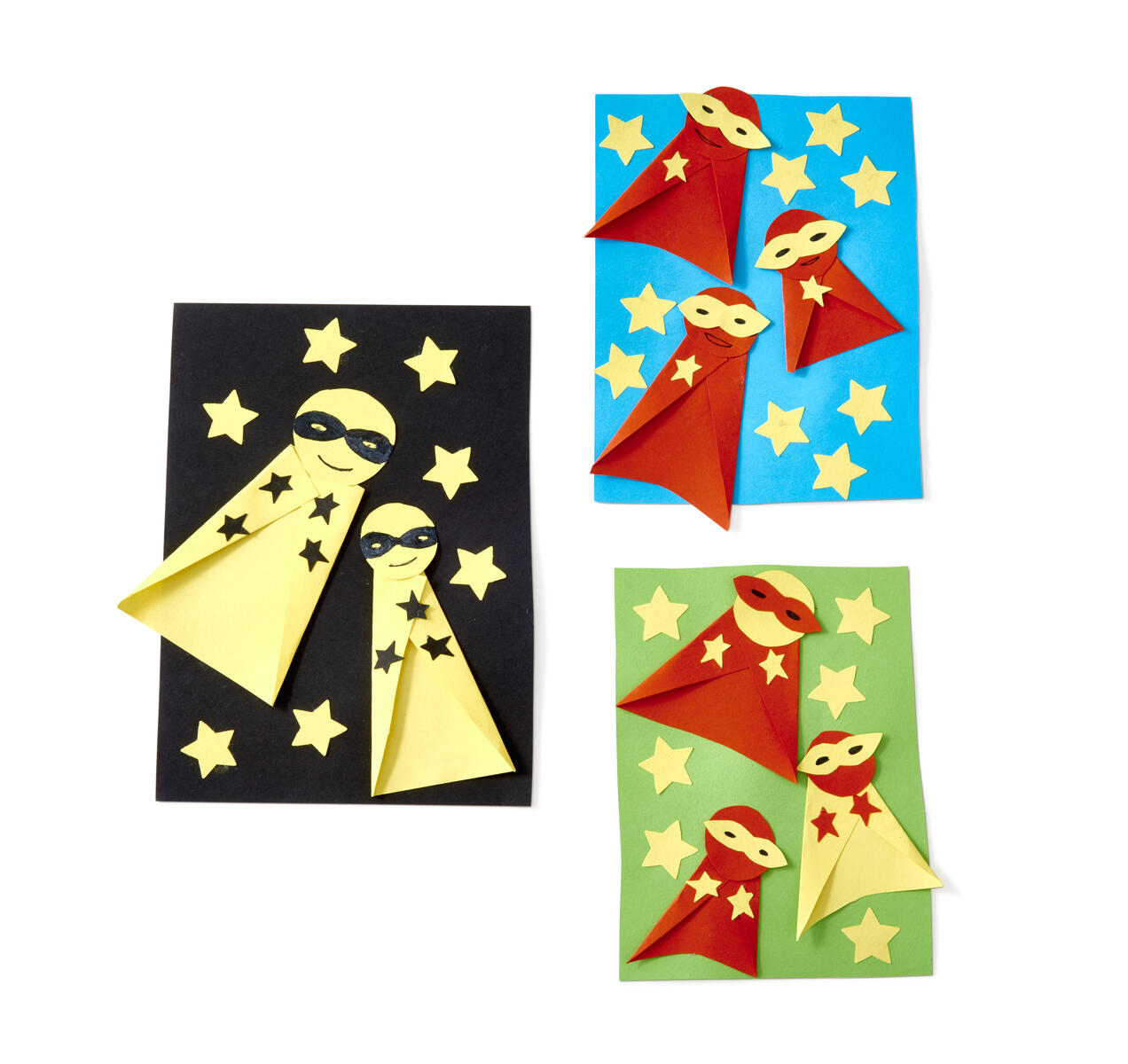 Stansa ut stjärnor i olika storlekar och limma på kortet.