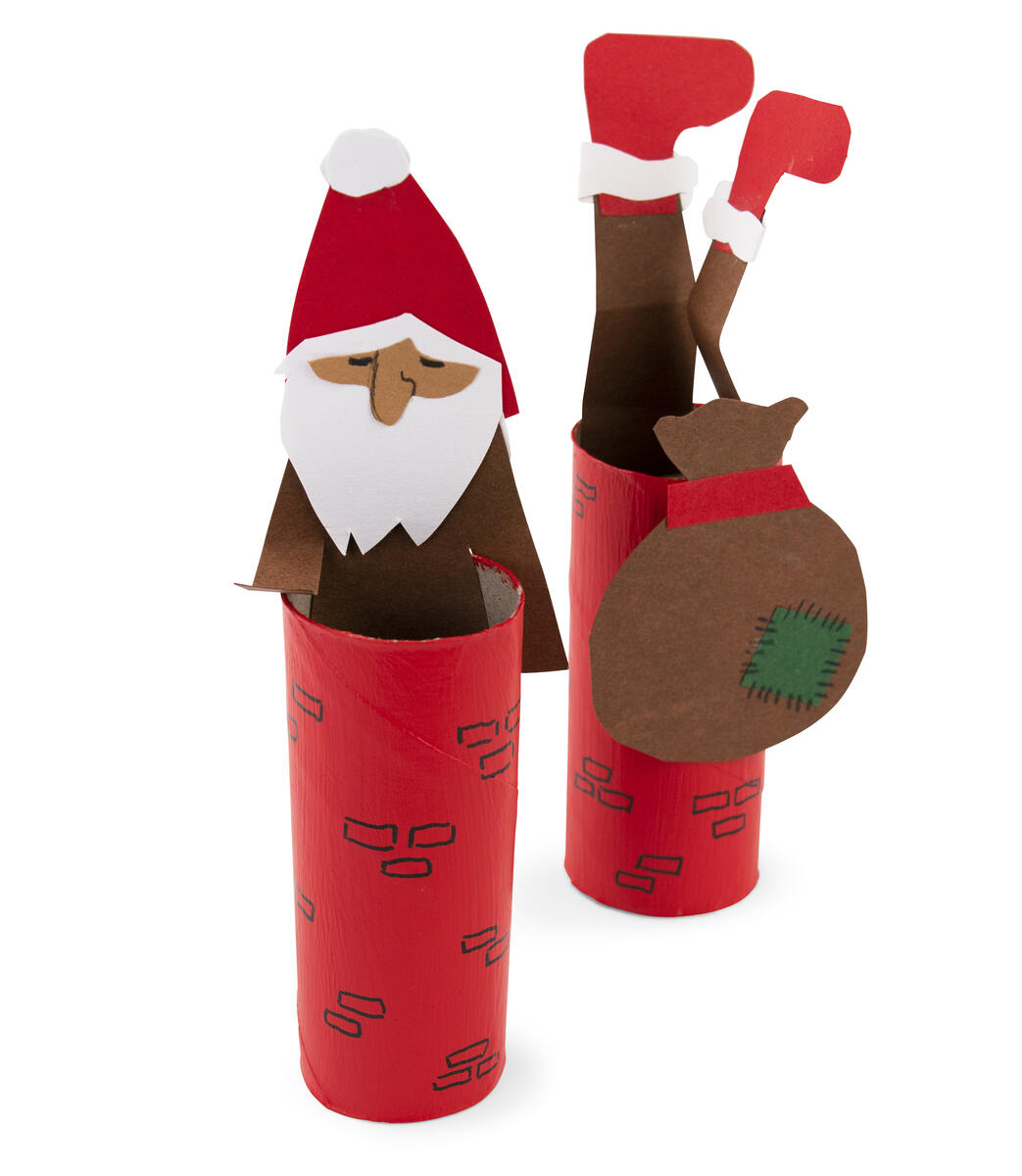 - Klipp ut och limma ihop delar så att det blir en tomtes överdel och underdel.