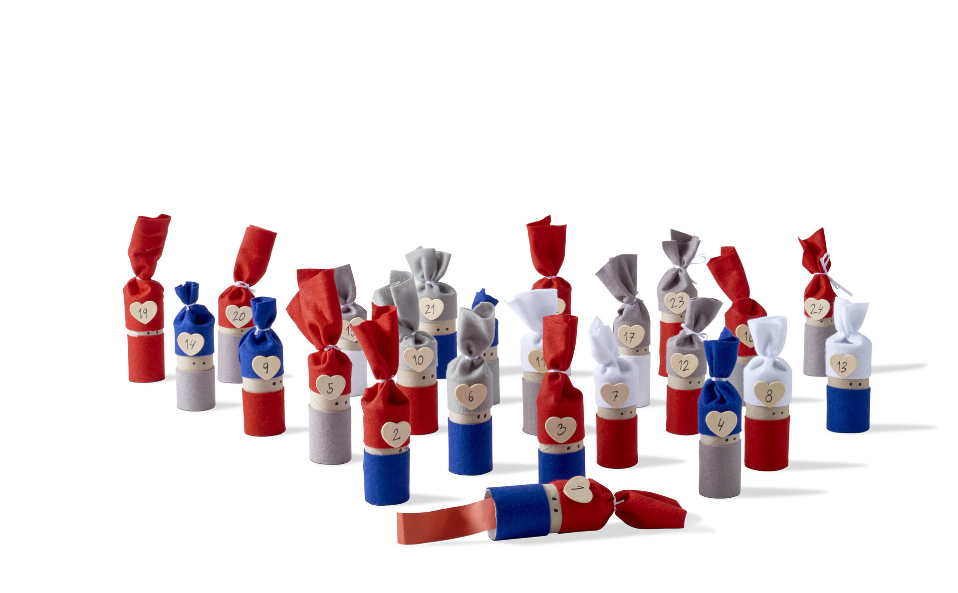 - Klipp ut små pappersremsor och skriv små budskap. Göm dem inuti papprullarna.