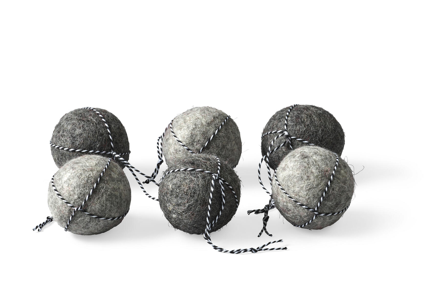 Klipp bort snörena och lossa bollarna från strumporna. Lägg tillbaka bollarna i tvättmaskinen och kör ett fullt/kör färdigt tvättprogram syntet 40 grader. När du tar ut bollarna har ullen krympt ihop runt skumbollen.