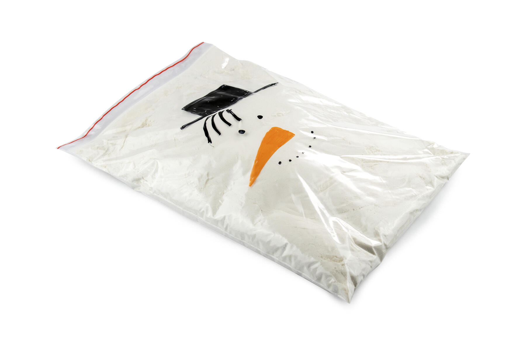 - Måla en snögubbe eller valfritt motiv på en återförslutningsbar påse.