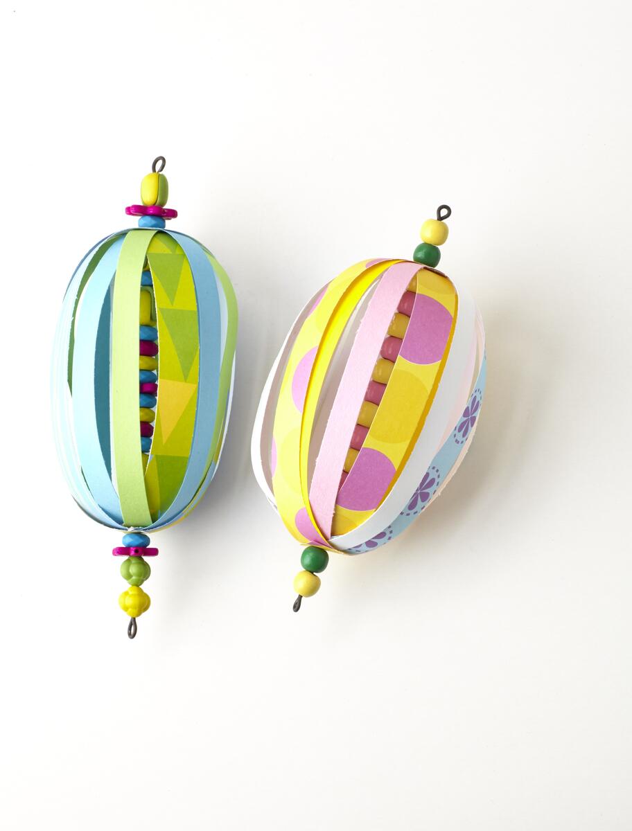 - Trä på ett par pärlor. Justera remsorna på tråden till önskad form (ägg).