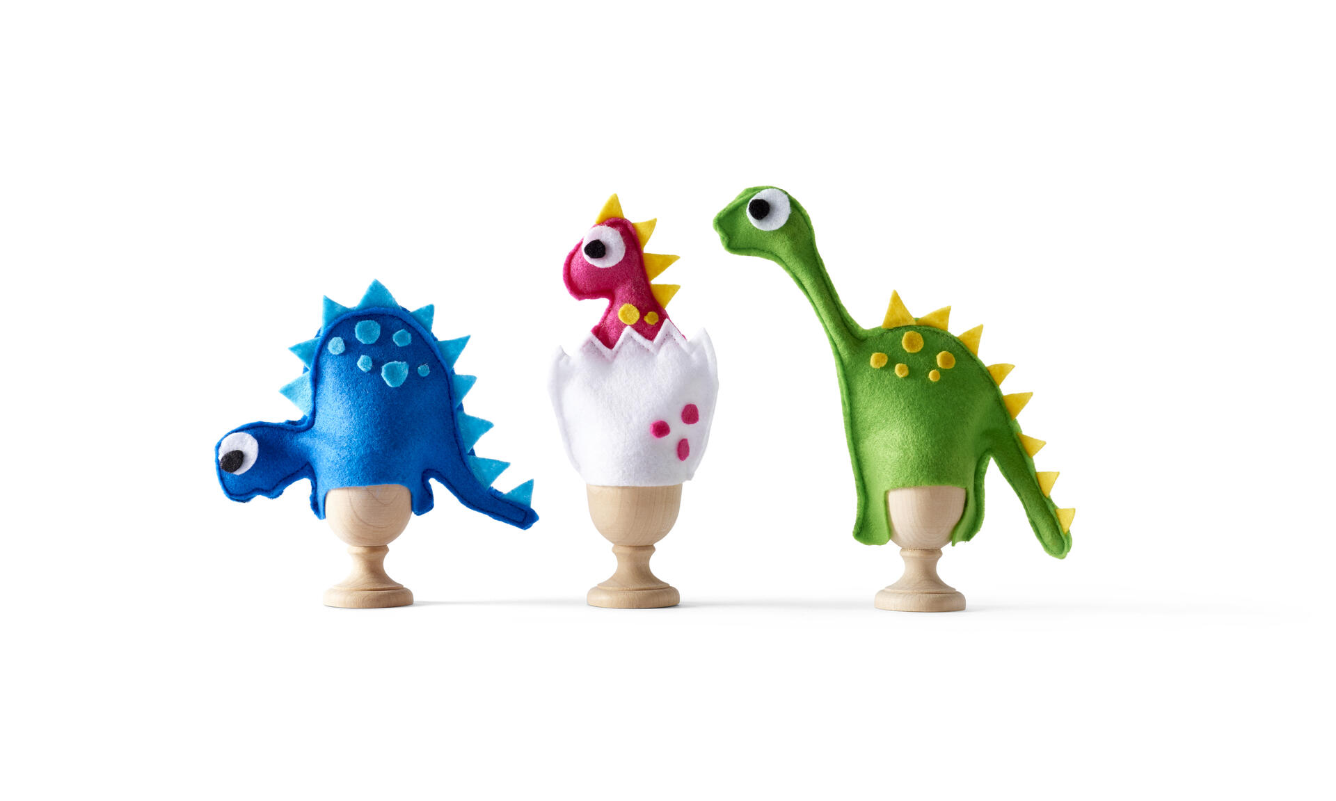 - Klipp ut ögon, prickar och taggar och klistra fast på dinosaurien.