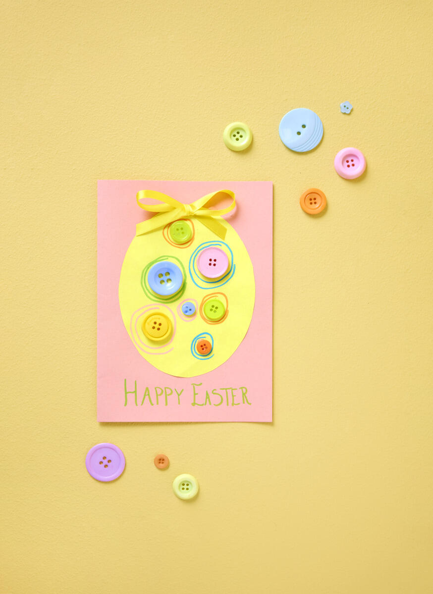 - Dekorera ägget med knappar i olika färger och storlekar. Rita små cirklar runt knapparna med en dekorationspenna, för att skapa lite effekt.