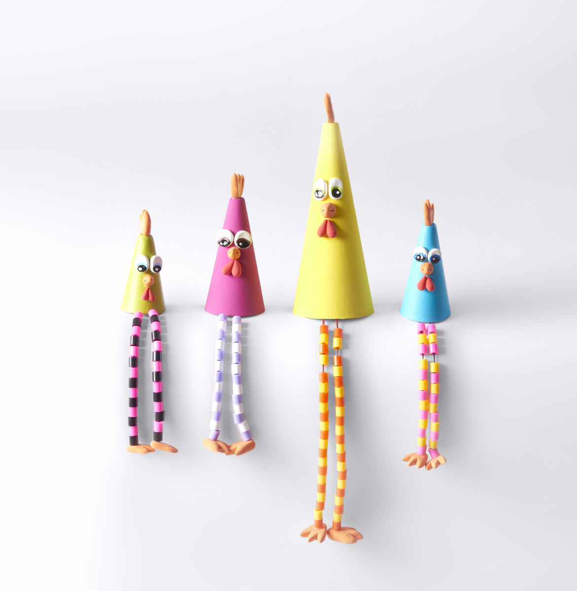 7. Sätt fast fötterna på pärlbenen och limma sedan fast benen inuti konen.