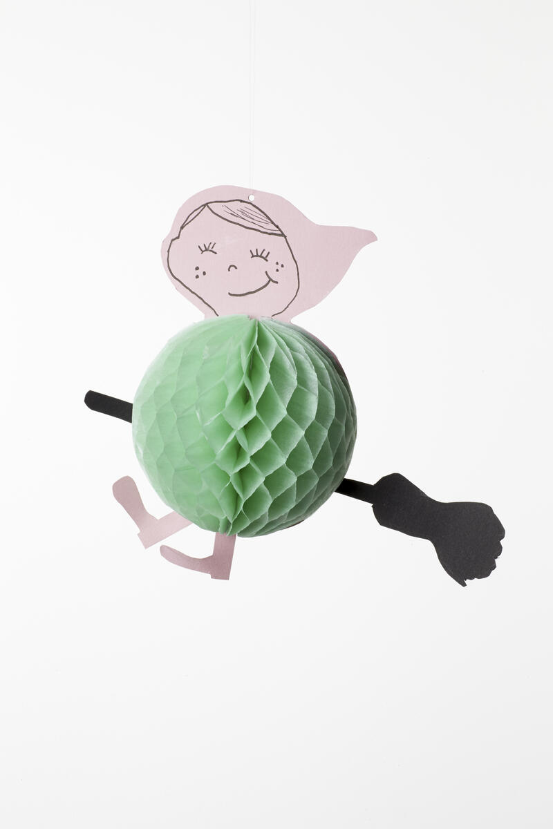 - Klistra fast en halvcirkel på var sida om pappersformen. Låt torka.