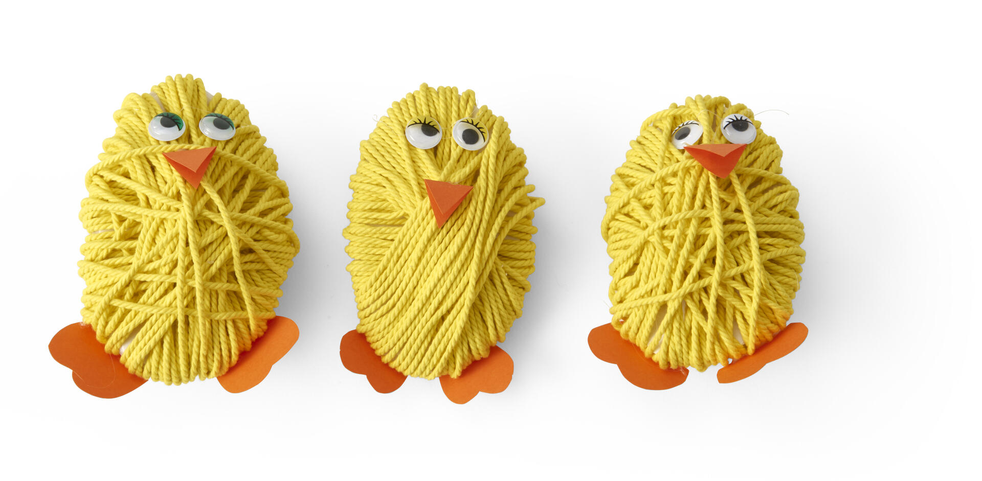 - Klipp ut näbb och fötter i papper och limma på kycklingen.