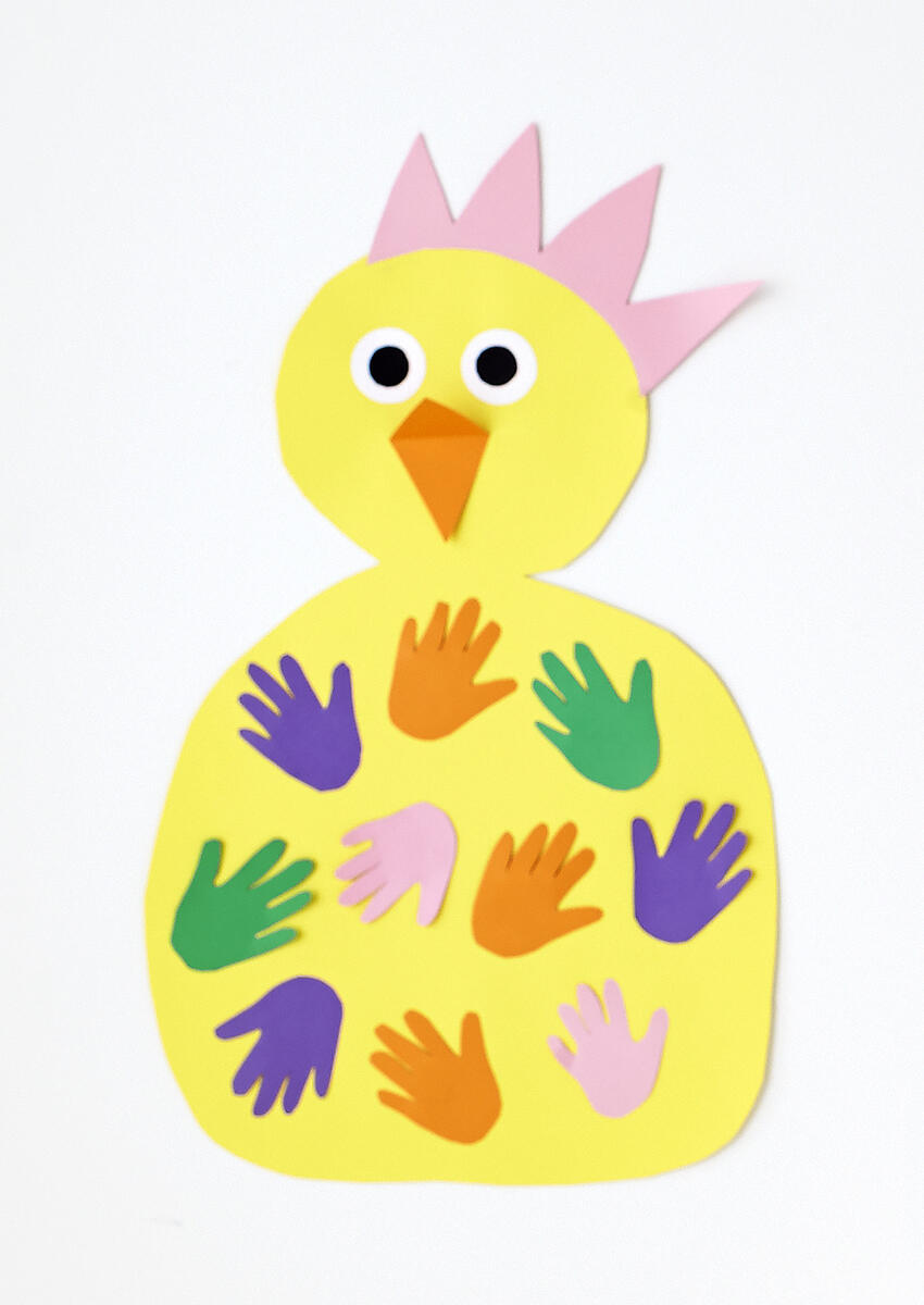 - Limma fast alla barnens händer som fjädrar på kycklingens kropp.