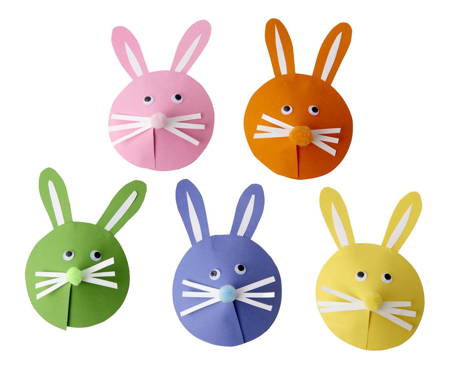 5. Limma fast morrhåren och örat på kaninen. Limma till sist dit ögon och en puffy pom som nos.